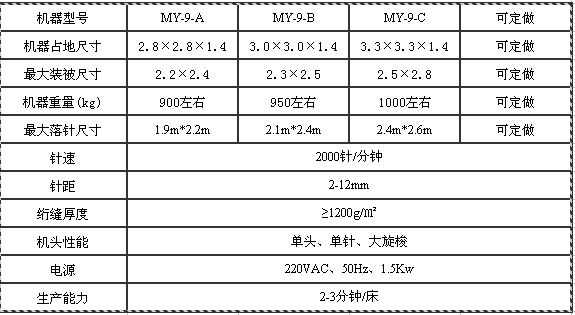 該設(shè)備可廣泛適用各種被子、睡袋、床罩、窗簾的絎縫;適合各種加工店、被褥加工廠、蠶絲被生產(chǎn)使用;