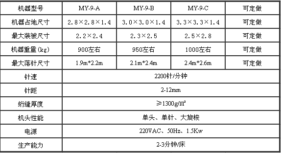 該設(shè)備可廣泛適用各種被子、睡袋、床罩、窗簾的絎縫;適合各種加工店、被褥加工廠、蠶絲被生產(chǎn)使用;